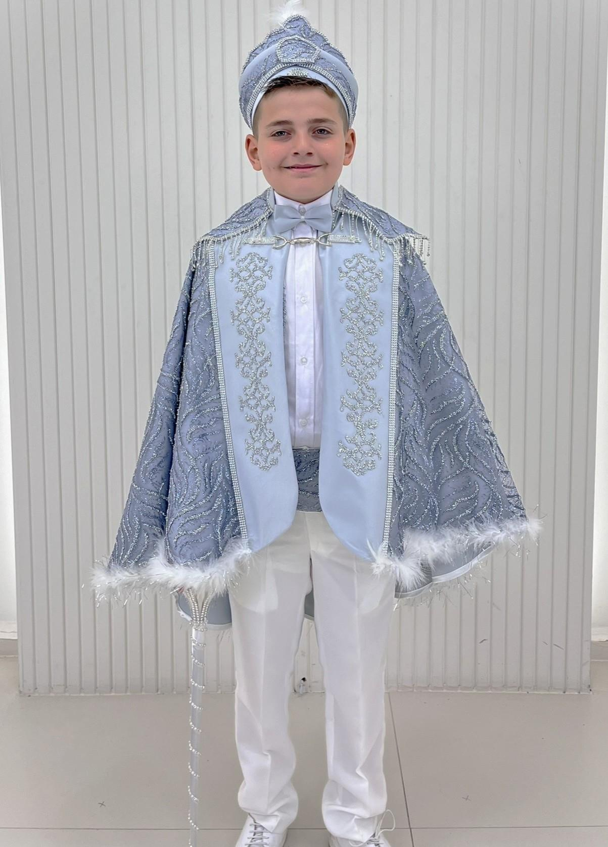 Antrasit Önü Pelerini Dikey Nakışlı Apoletleri İşlemeli Pelerinli Sünnet Kıyafeti